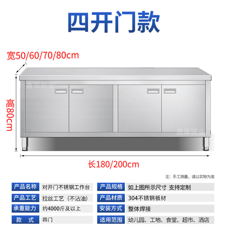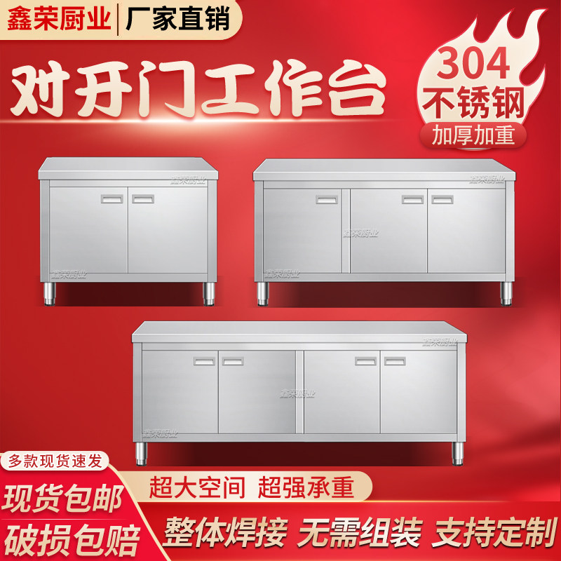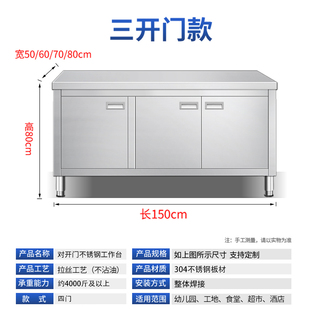 304不锈钢对开门工作台拉面台打荷台定制橱柜商用和面切菜案板