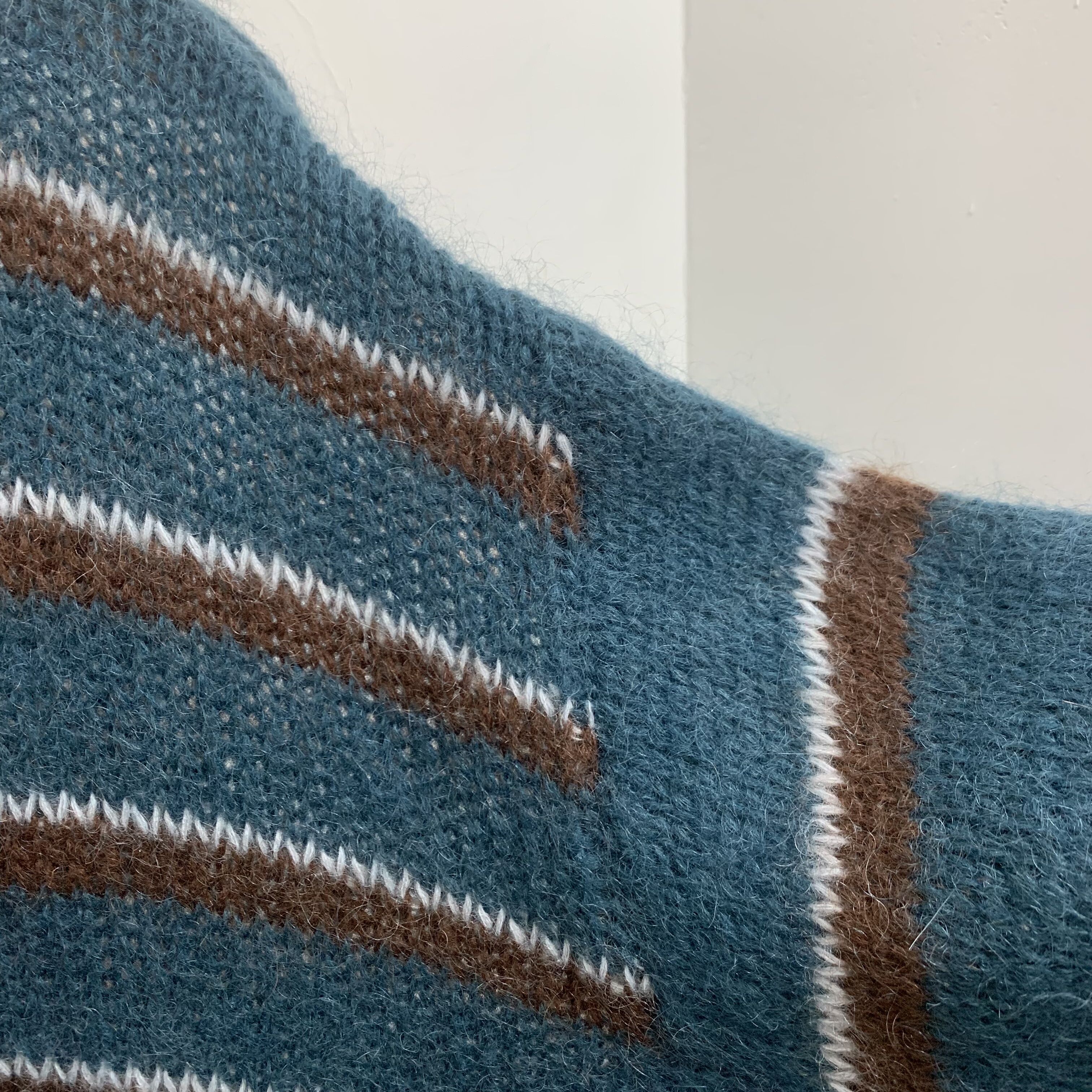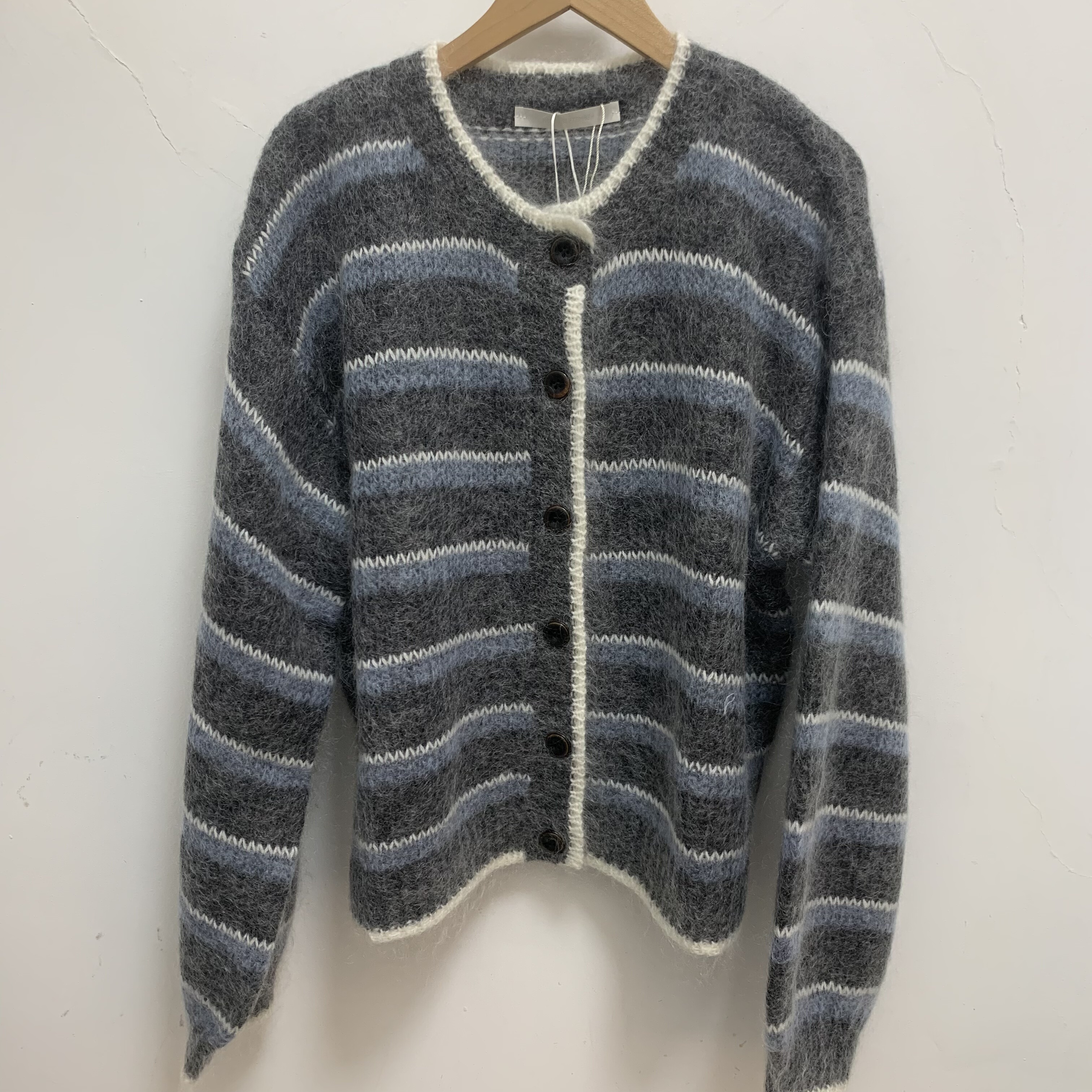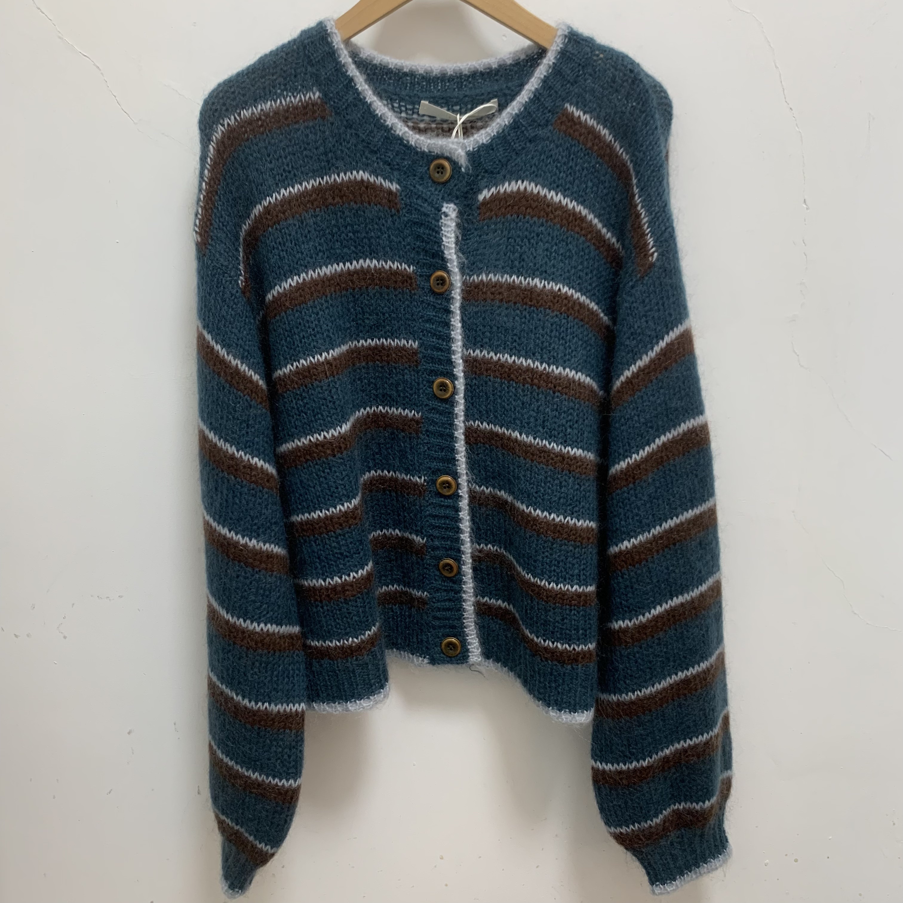 羊毛马海毛开衫 实体店精品女装 圆领撞色条纹针织衫 新款 2025秋季
