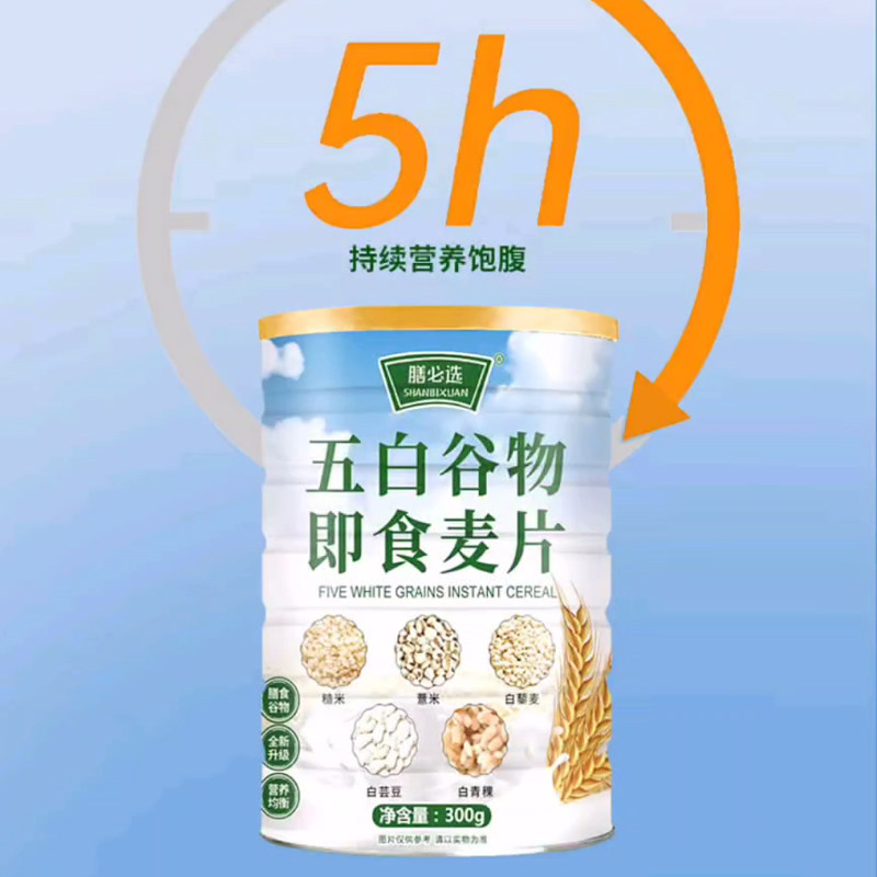 300g 膳必选五白谷物即食麦片膳食代餐全新升级款 罐 拍1发6罐