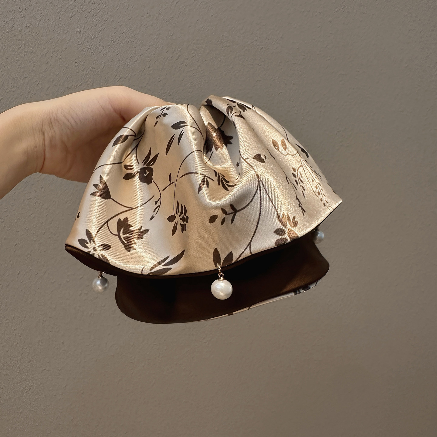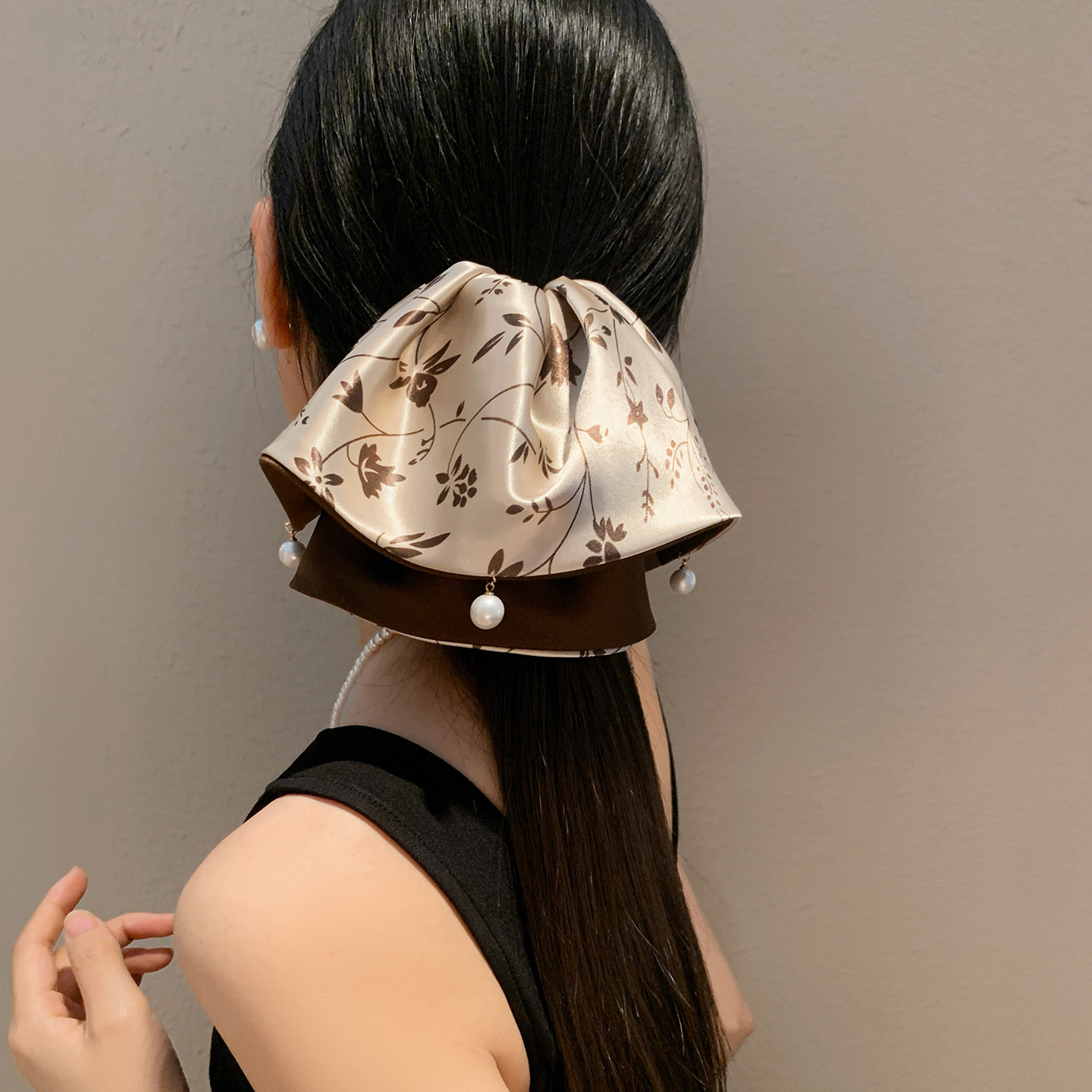 新中式 花朵珍珠缎面马尾抓夹女后脑勺高级感气质发夹半扎发头饰