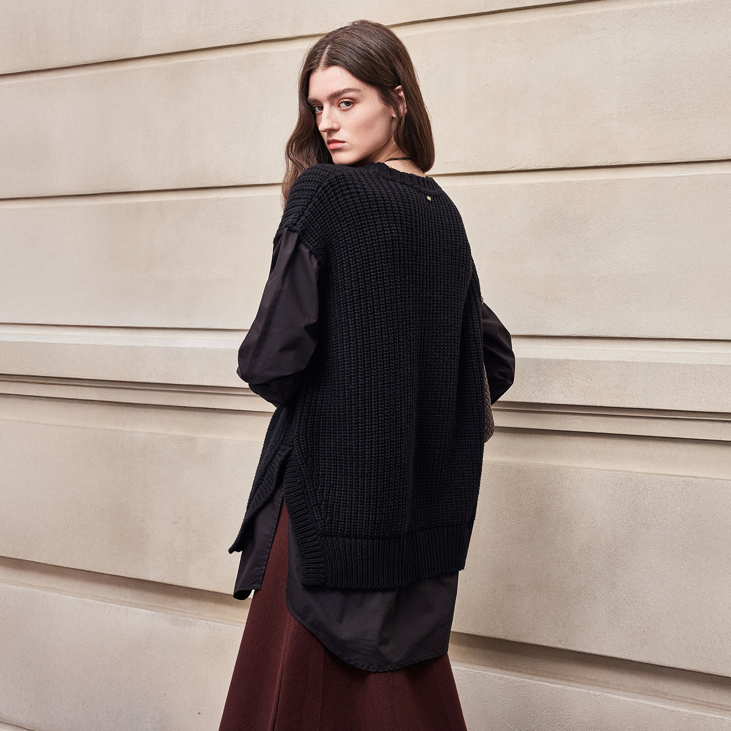 RTIMFD复古假两件v领翻领毛衣 上衣慵懒风外套 cleanfit高级针织衫