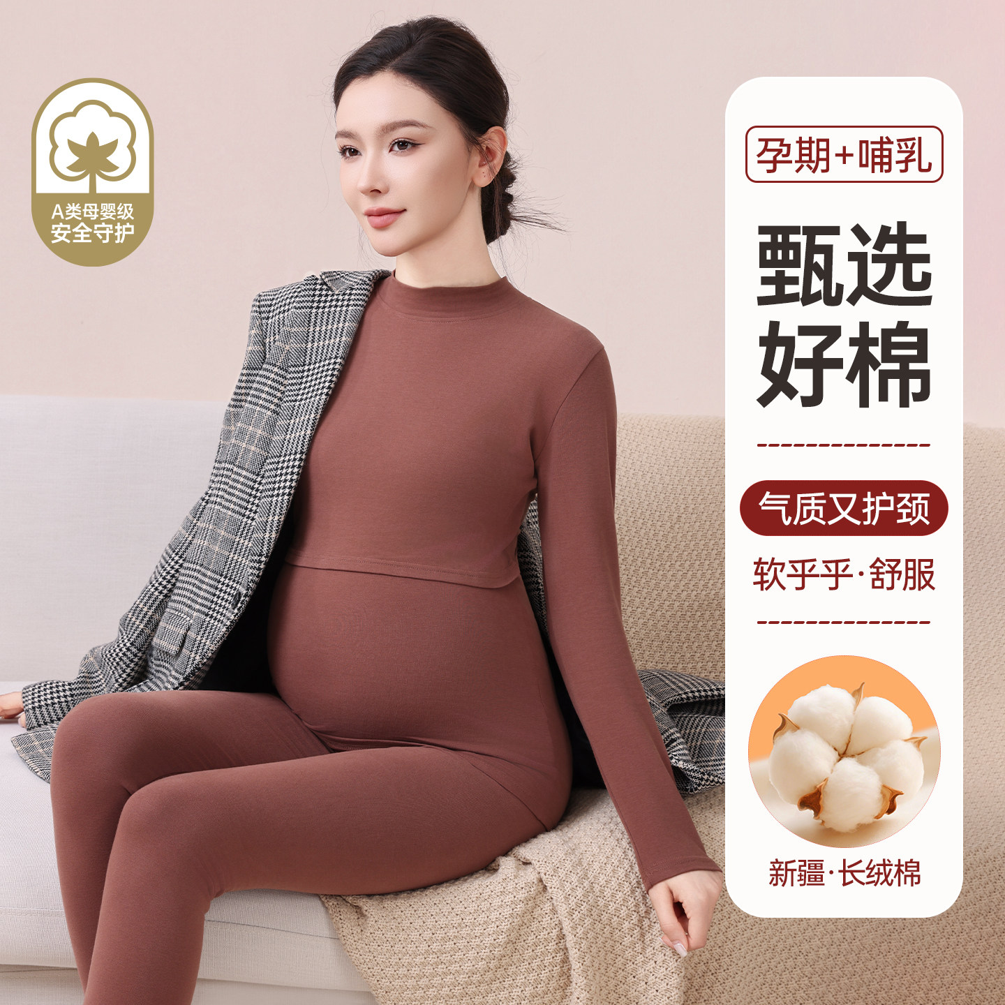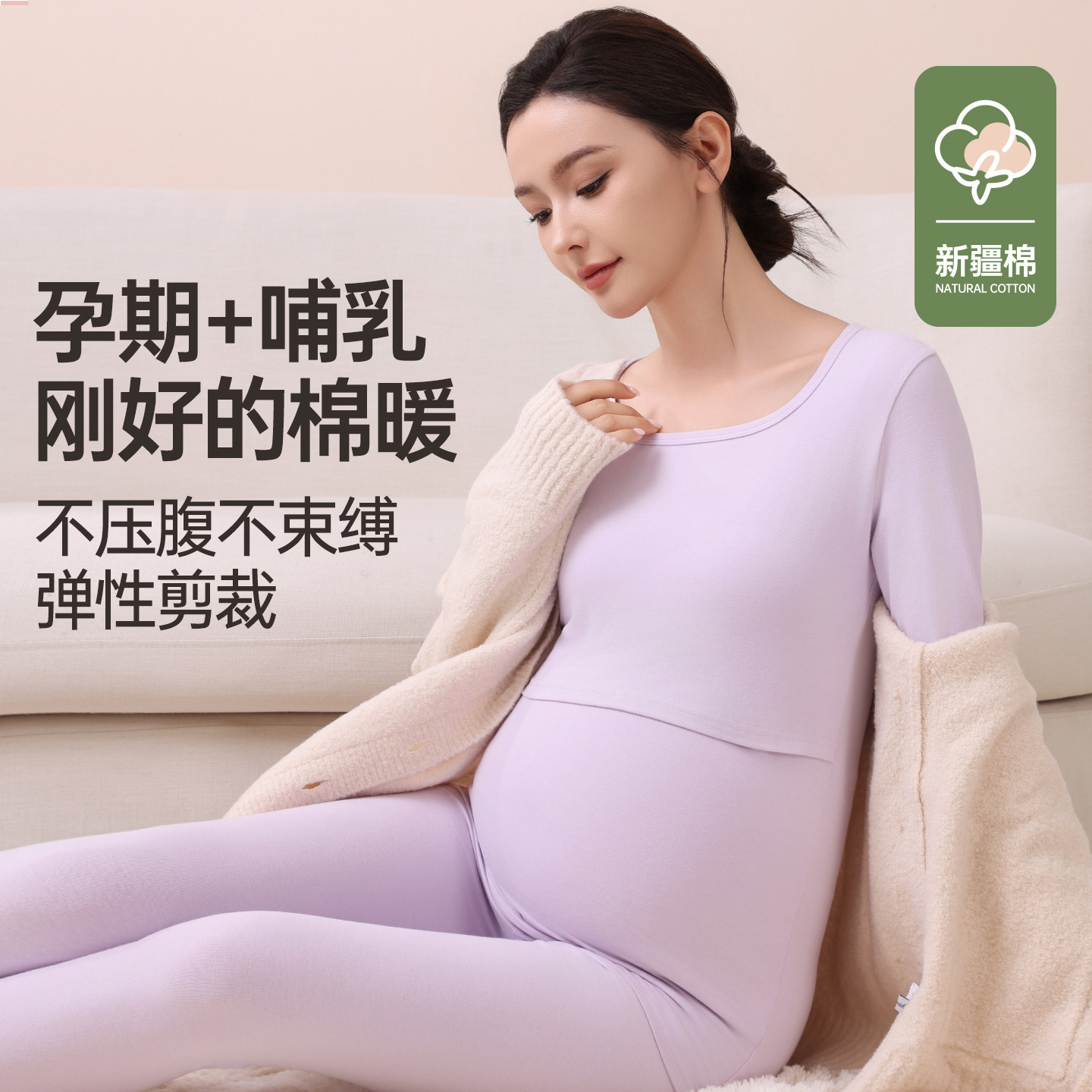 月子服怀孕期产后哺乳期睡衣保暖内衣 纯棉秋冬款 孕妇秋衣秋裤 套装
