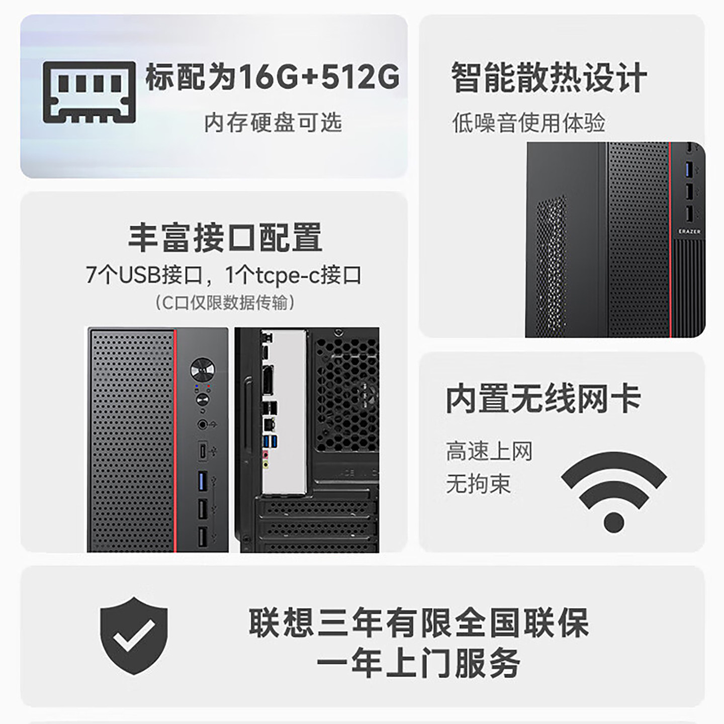 32G 13620H 1T套机27英寸办公游戏 电脑酷睿十核i7 Lenovo联想台式