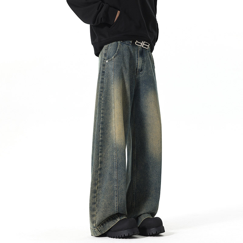 潮流百搭宽松直筒高街男生阔腿长裤 加绒加厚新款 冬季 男士 子 牛仔裤