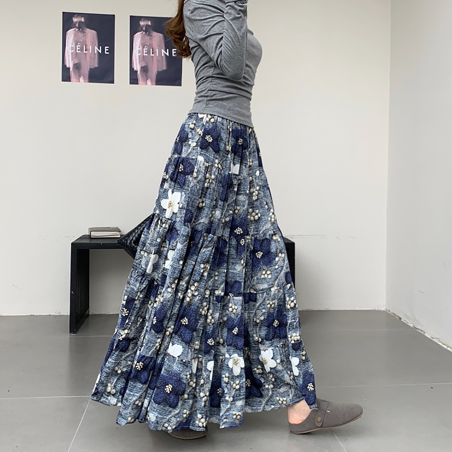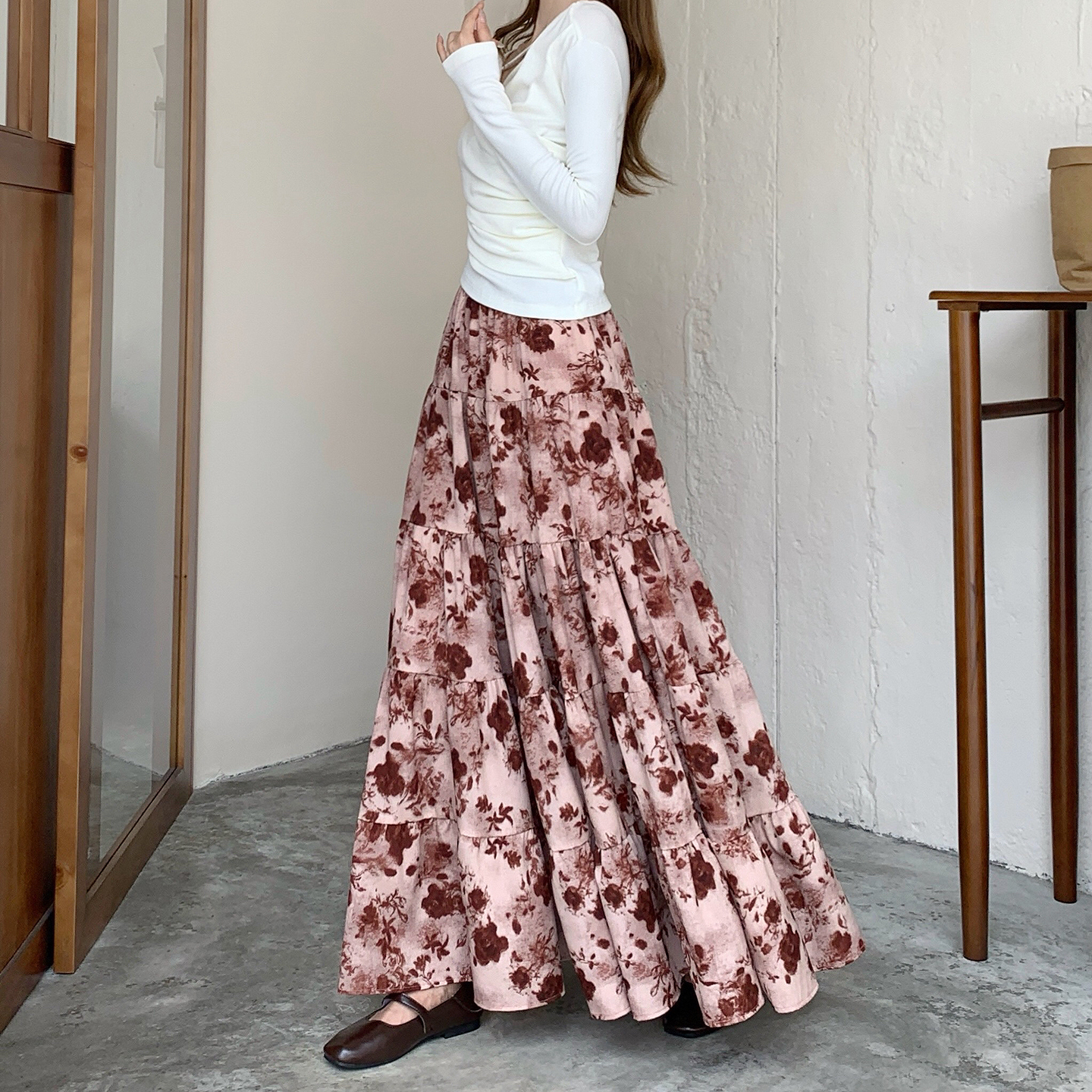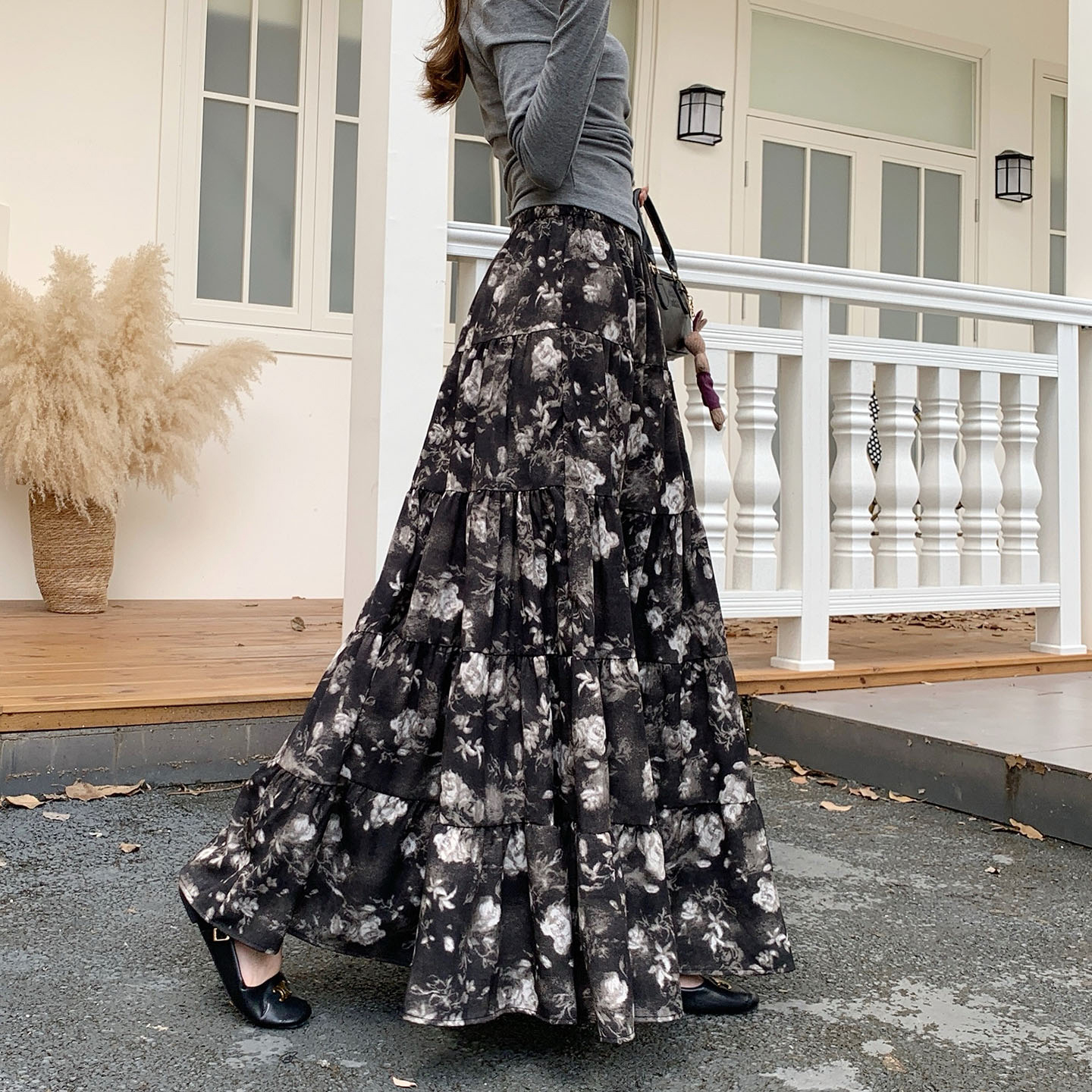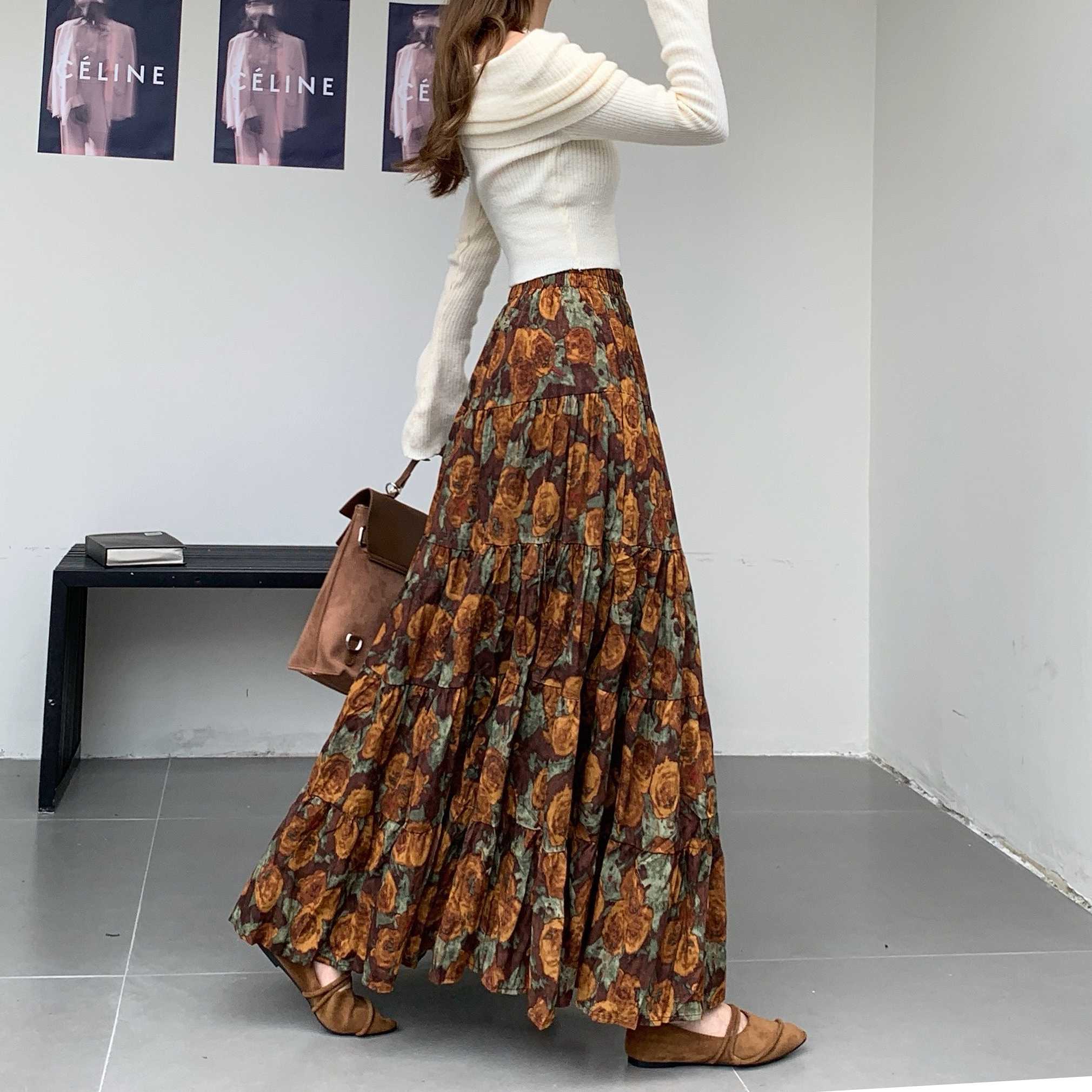 梨型身材遮胯裙子2025秋冬法式 碎花蛋糕裙a字半身裙垂感大摆长裙