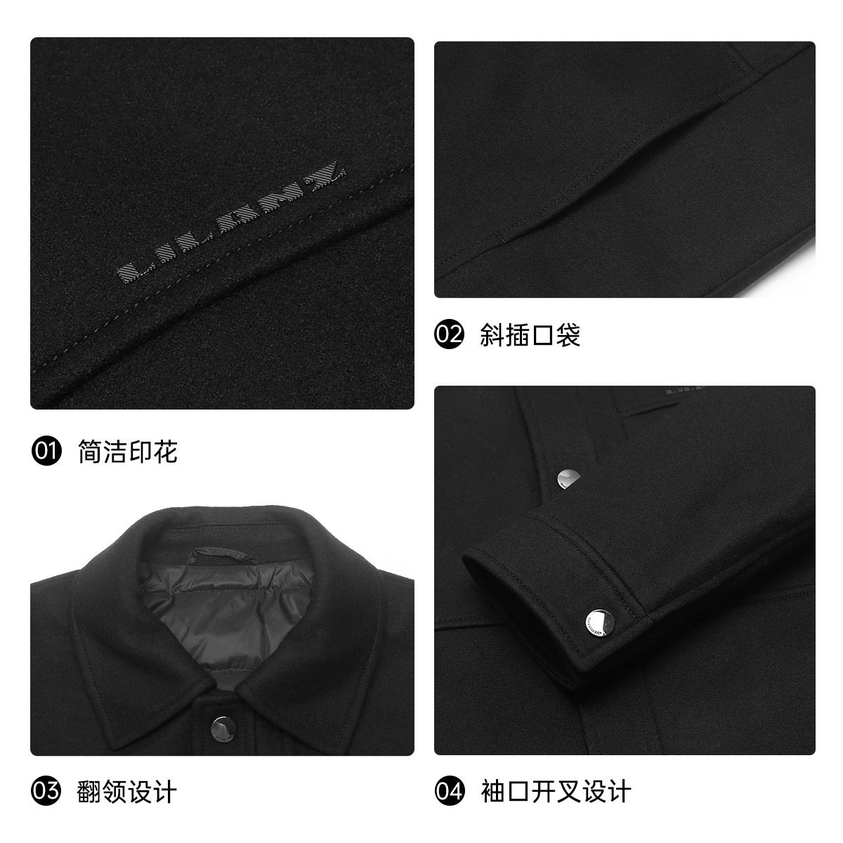 呢子大衣男生高级感保暖外衣 毛呢外套中长款 Hualun冬季 假两件男士