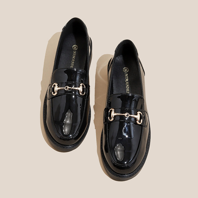 平底浅口单鞋 一脚蹬黑色英伦风小皮鞋 女2025新款 BeauToday乐福鞋