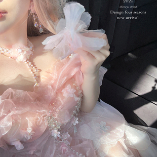 雪妮原创〈樱灵花姬〉粉色一字肩抹胸连衣裙浪漫法式 仙女裙公主裙