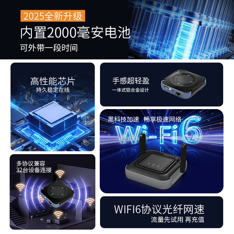 车载户外cpe热点 fi6便携式 2025新款 随身wifi移动无线网络路由器全网通流量4g上网卡免插卡免宽带家用智能wi