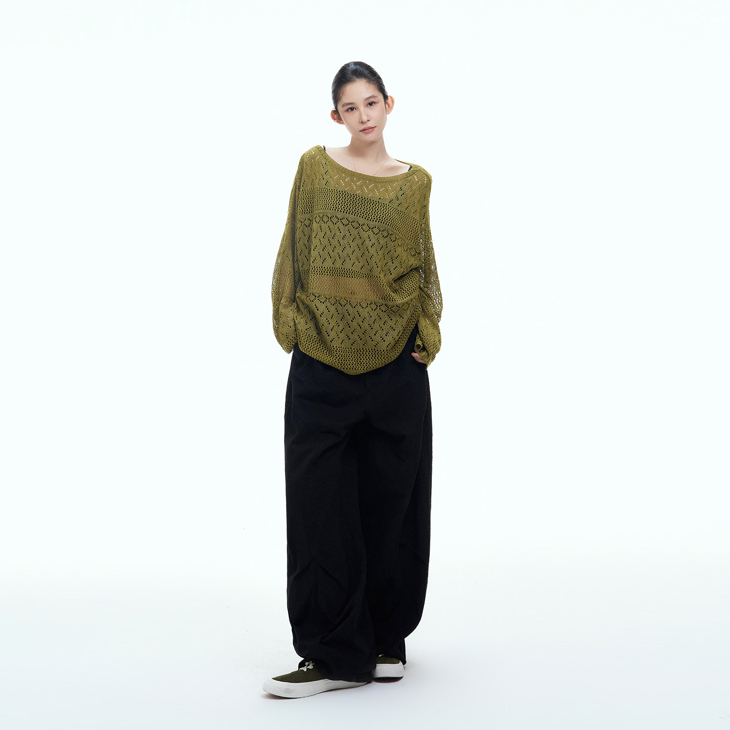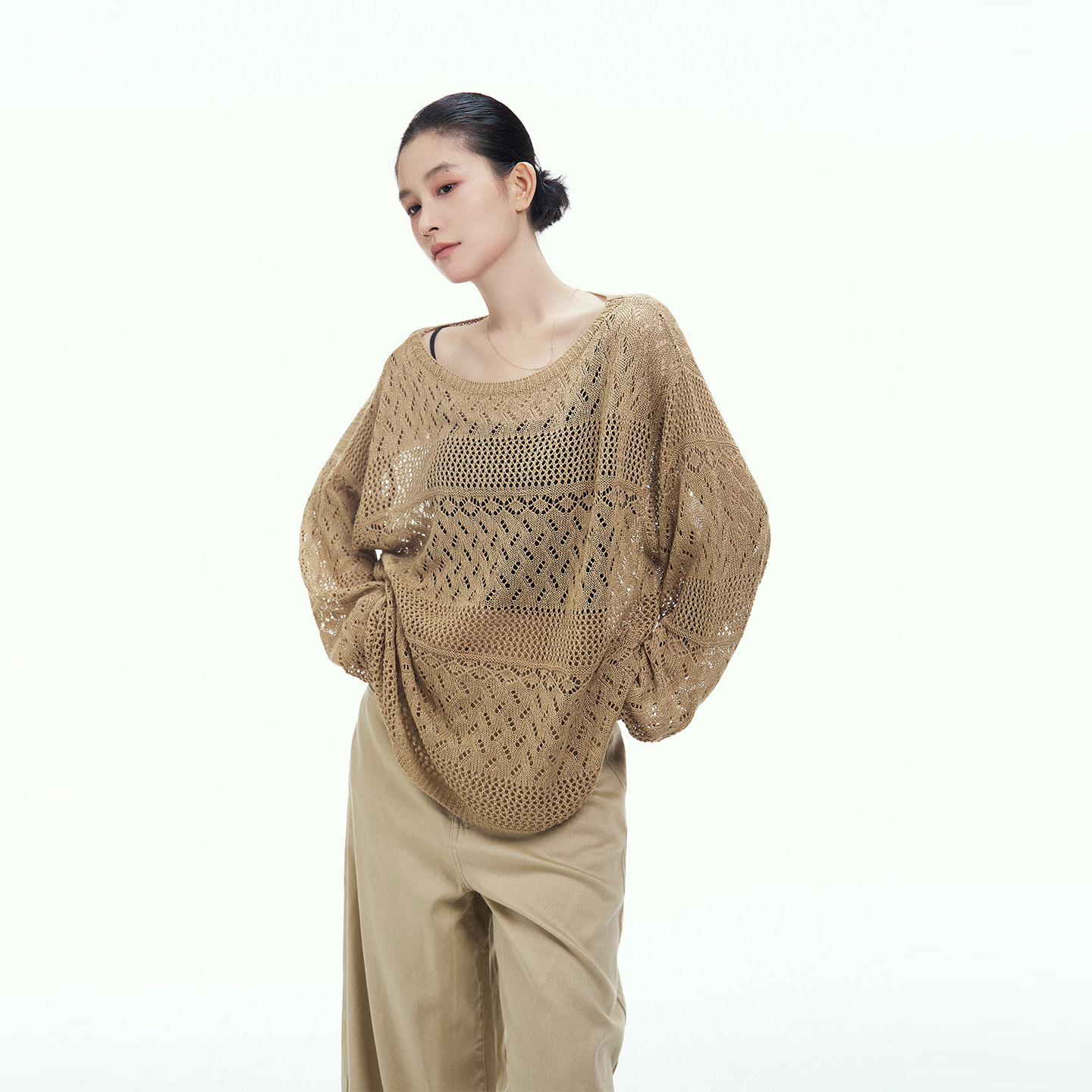 上衣 女早秋韩系高级感宽松百搭罩衫 吴童童防晒镂空圆领长袖 针织衫