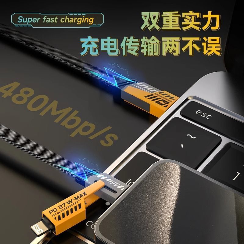四合一数据线typec超级快充线PD适用iPhone15苹果14小米华为安卓type c65w平板ipadpro机甲线手机充电三合一x