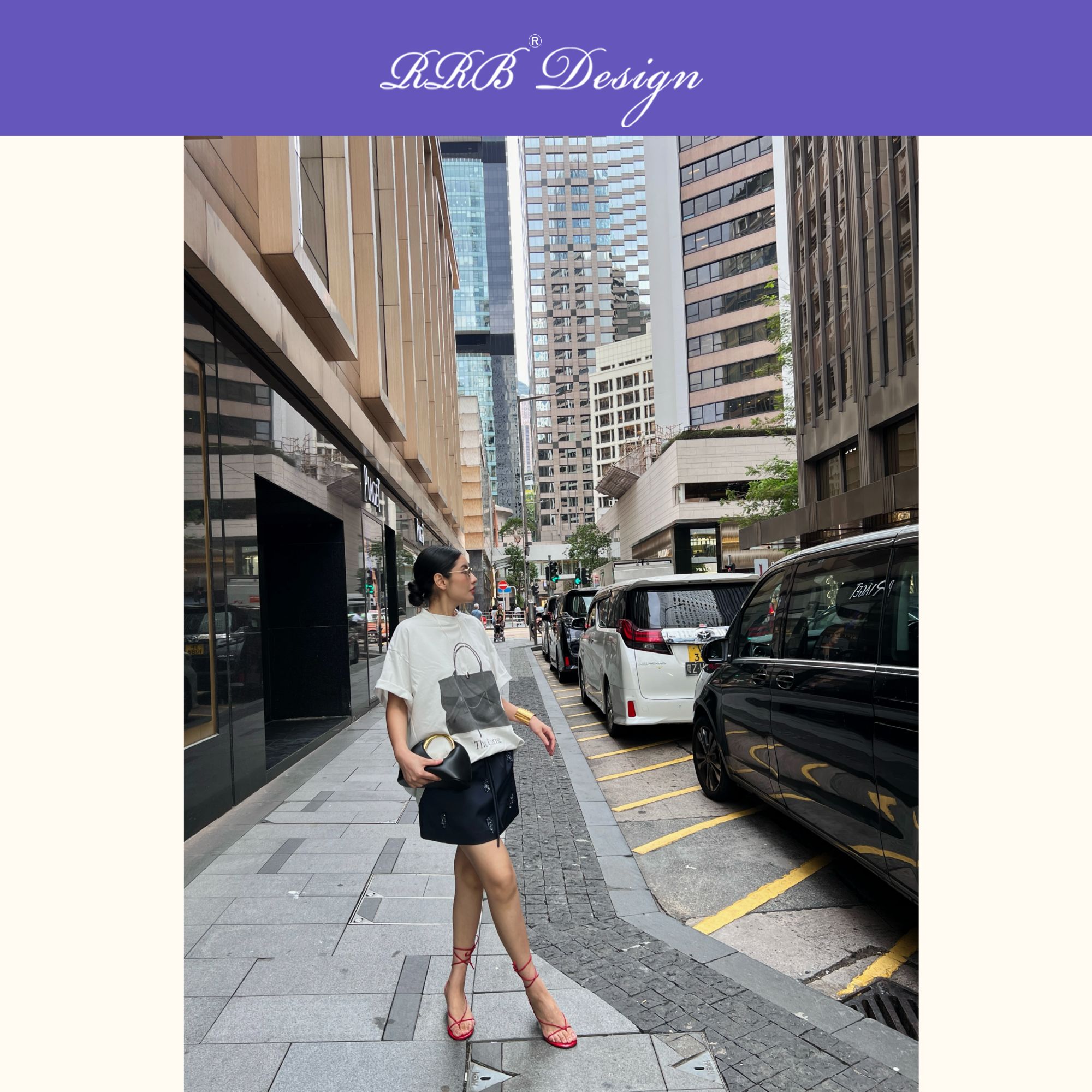 T恤 」宽松半高圆领趣味包包图案字母短袖 RRB Design「巴黎风格