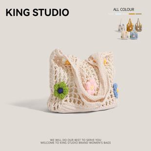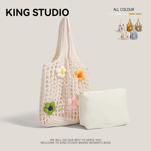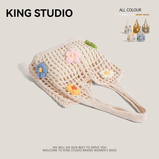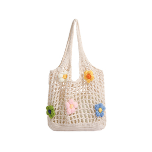 夏天编织镂空腋下包包女2025新款 花朵针织包大容量休闲单肩托特包