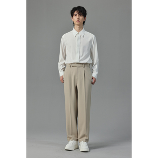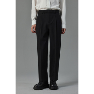 直筒宽松男基础加厚垂感商务修身 YUXIAN余闲秋冬毛呢长九分裤 西裤