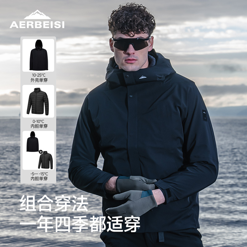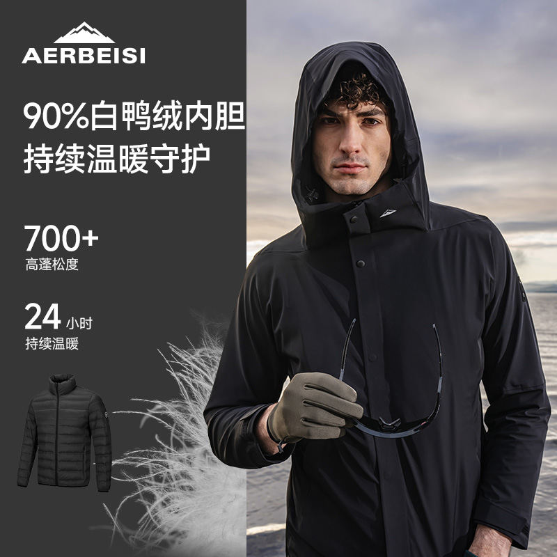 阿尔卑斯户外三合一羽绒冲锋衣男90鸭绒内胆冬季 三防软壳夹克外套