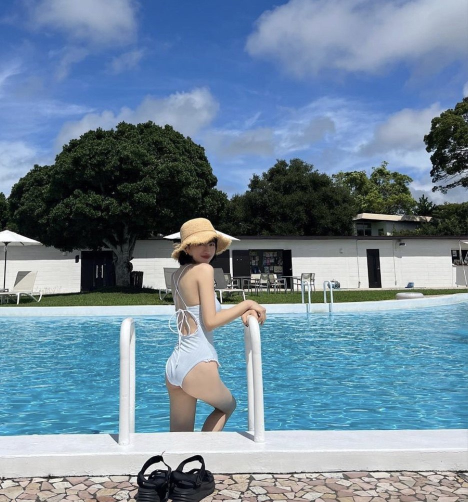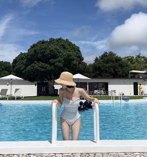 atlanticbeach法式 复古泳衣女泡温泉度假连体性感露背显瘦高级感