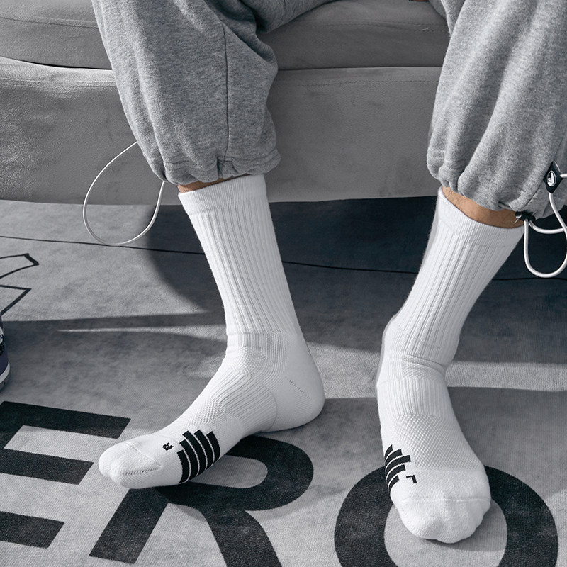 佐印4双篮球袜子夏季 运动毛巾底中筒袜减震白色长袜精英潮袜 男士