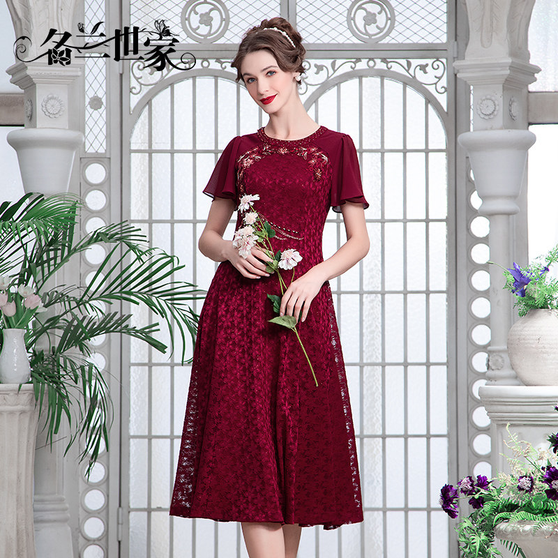 名兰世家妈妈婚宴礼服喜婆婆婚礼装 高端蕾丝连衣裙原创设计师品牌