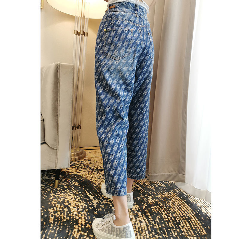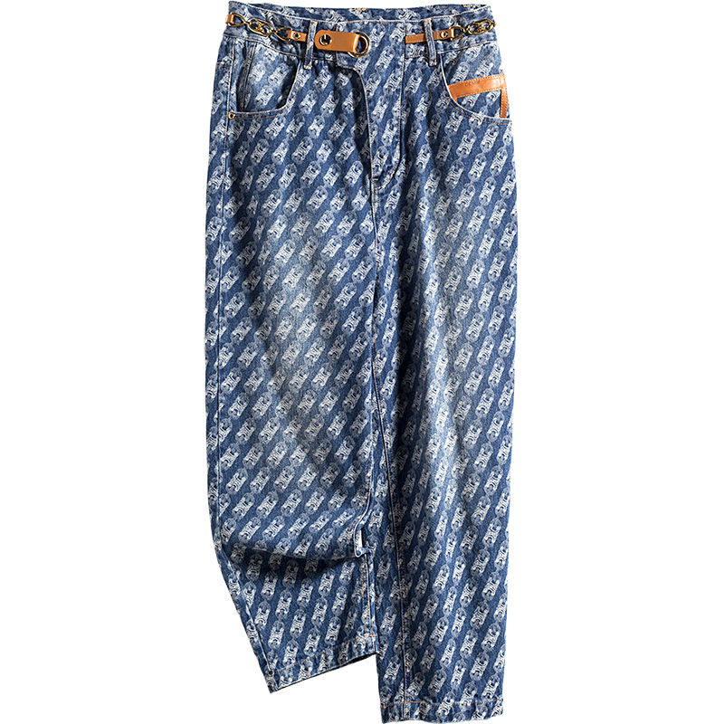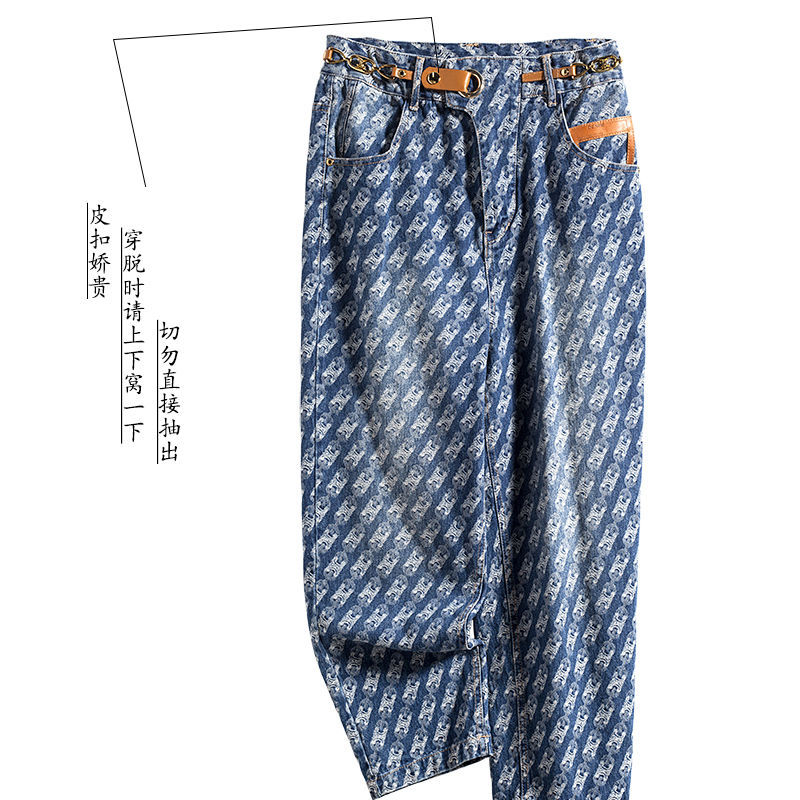 休闲九分萝卜裤 女2024春夏新款 女潮 花色设计感高腰牛仔裤 欧货时尚