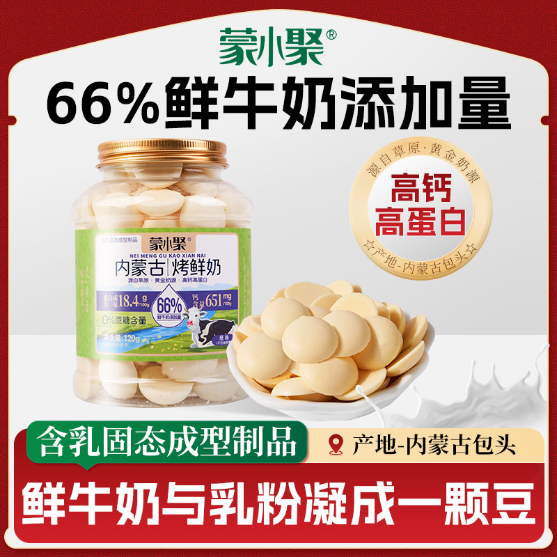 蒙小聚内蒙含钙烤鲜奶烤酸奶罐装 120g牛奶味高钙鲜奶脆乳饼