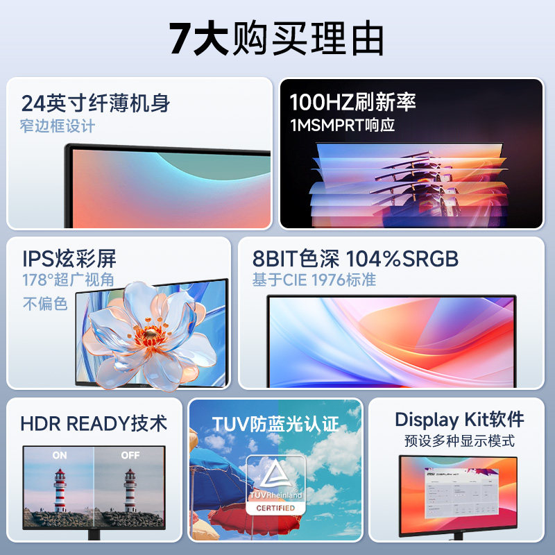 微星24英寸100HZ高清台式 电脑显示器低蓝光IPS屏MP242L液晶屏幕