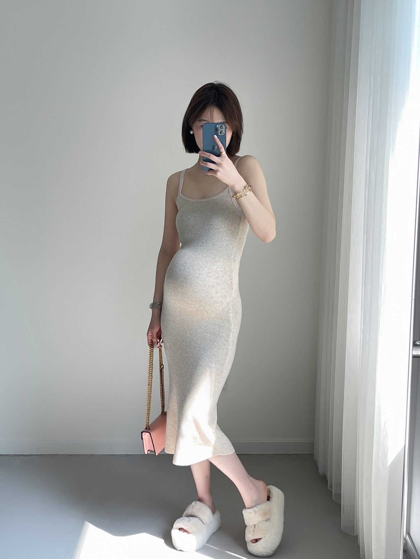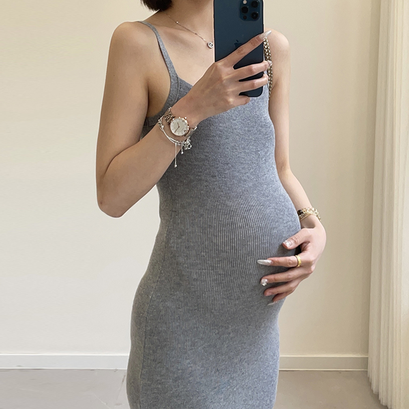 中长款 显瘦基础打底方领吊带无袖 针织连衣裙女 孕妇装 2024春新款