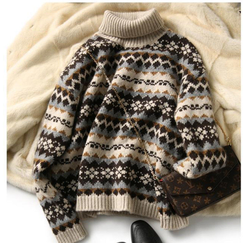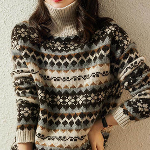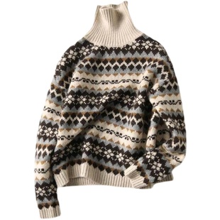 针织打底衫 品牌高级感羊毛衫 女半高领宽松毛衣秋冬加厚羊绒长袖