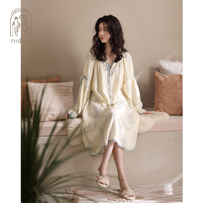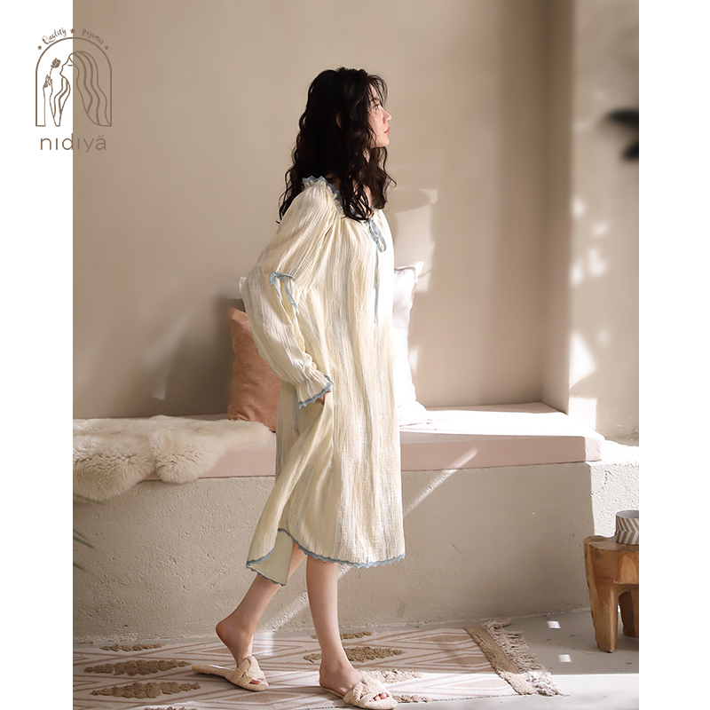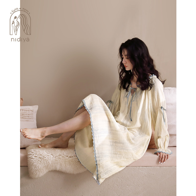 幸棉法式 睡裙女秋冬睡袍睡衣厚家居服高级感连衣裙宽松长裙子 长袖