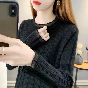 针织衫 女套头百搭上衣修身 蕾丝圆领软糯毛衣打底衫 2025年春秋新款