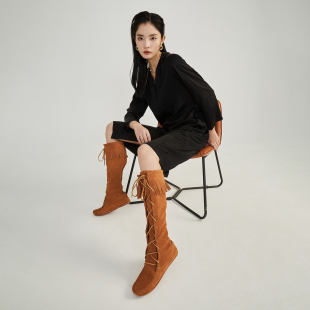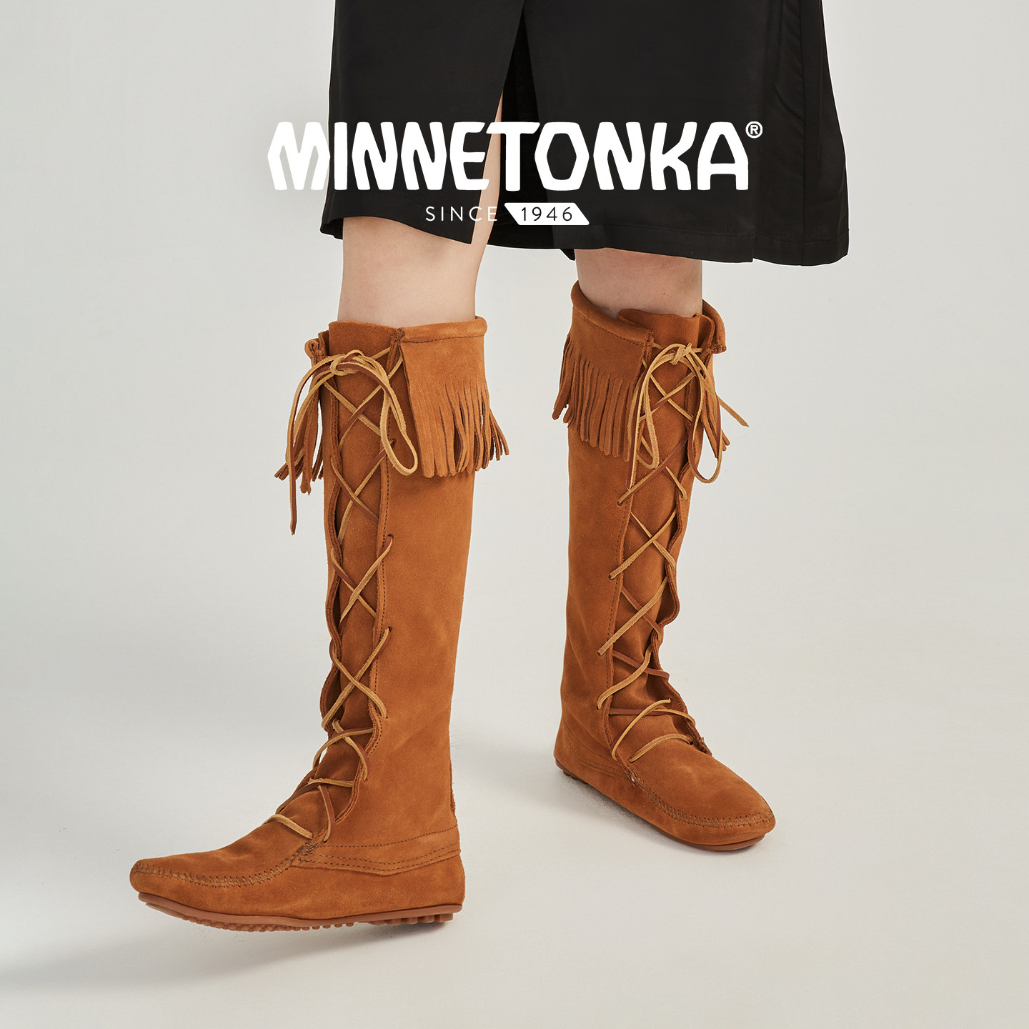 系带欧美女长筒靴 流苏靴高筒新款 MINNETONKA 迷你唐卡女士时尚