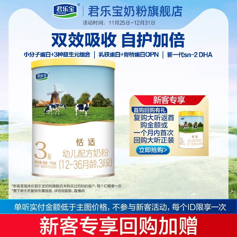 U君乐宝奶粉旗舰店恬适3段幼儿配方奶粉12 1罐 36个月三段170g