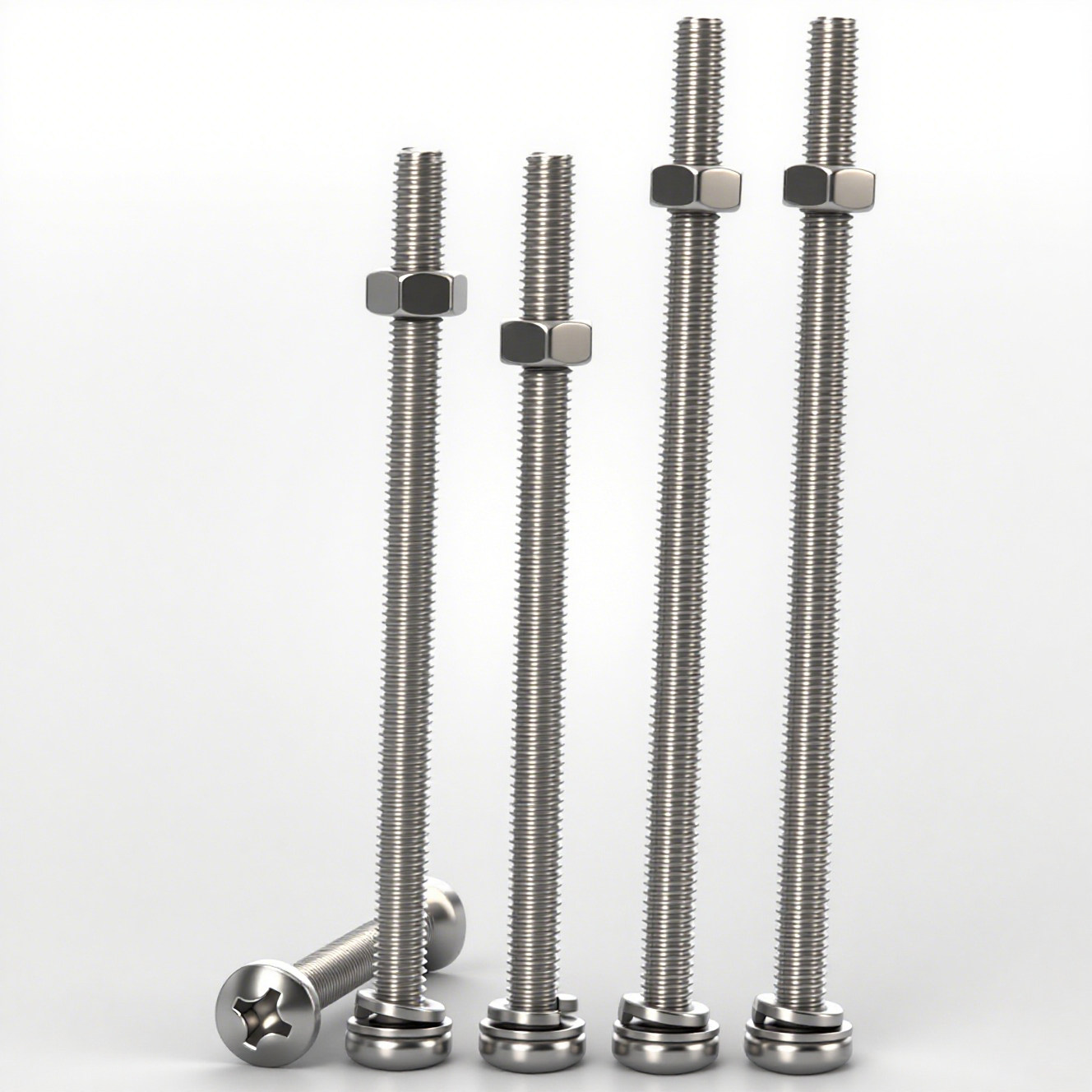 304不锈钢加长螺丝钉子垫片螺母大全十字盘头特长螺丝杆组合套装