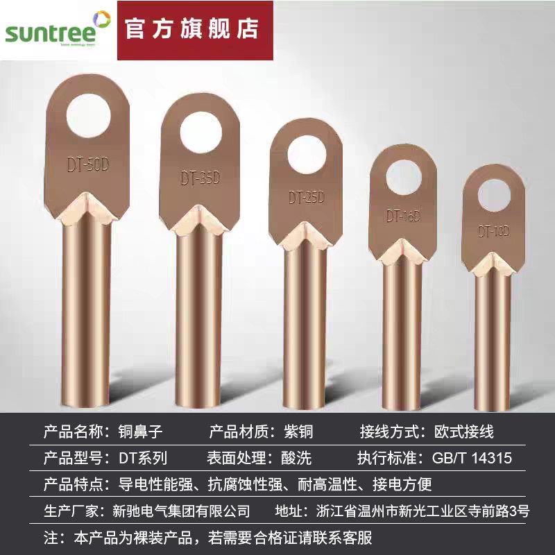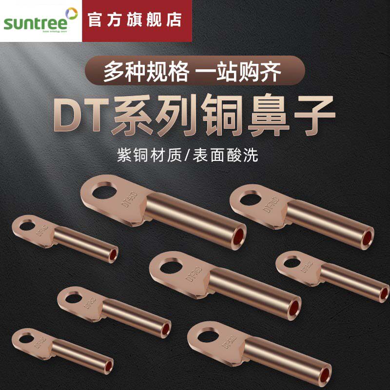 国标铜接线端子DT铜鼻子紫铜接头电线鼻直接头线耳10平方镀锡堵油