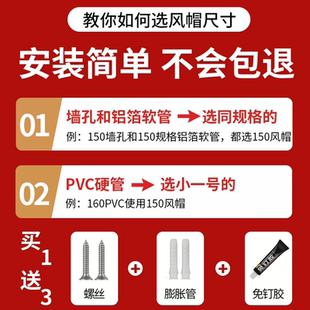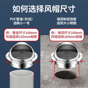 304不锈钢风帽外墙出风口油烟机厨房防风防雨罩卫生间室外排风罩