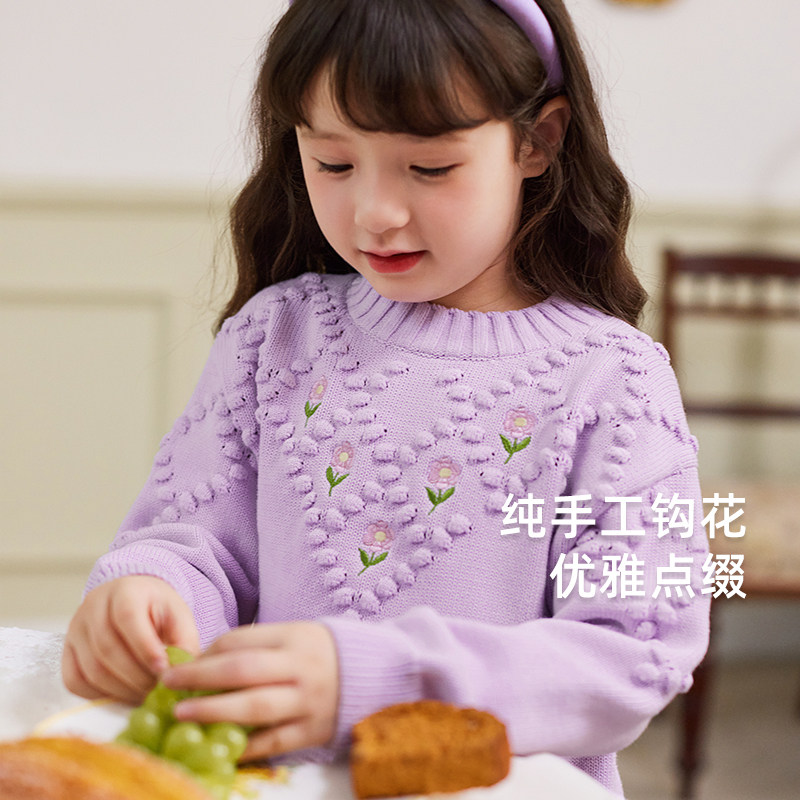 女童毛衣秋冬大童纯棉针织衫 红色衣服 儿童保暖洋气潮宝宝2025新款