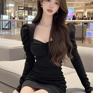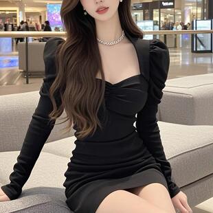 洋气修身 连衣裙高级感气质名媛轻奢小众时尚 包臀裙子 长袖 红色法式