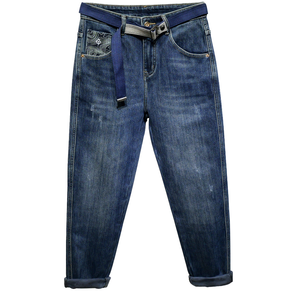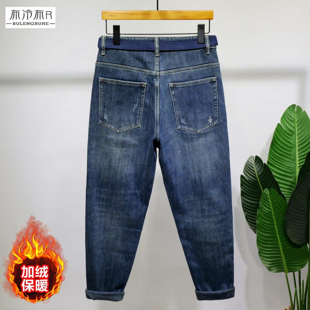 布冷布热冬天厚绒锥形加绒牛仔裤 男微宽松小哈伦休闲青年弹力长裤