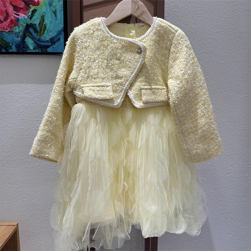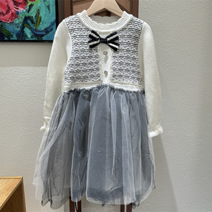 现货清仓特价 秋冬女童网纱公主裙背带裙洋气半裙套裙拼接连衣裙潮