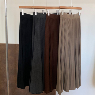 百搭休闲淑女风伞裙 韩版 高腰显瘦羊绒加厚百褶半身裙2025秋季 新款