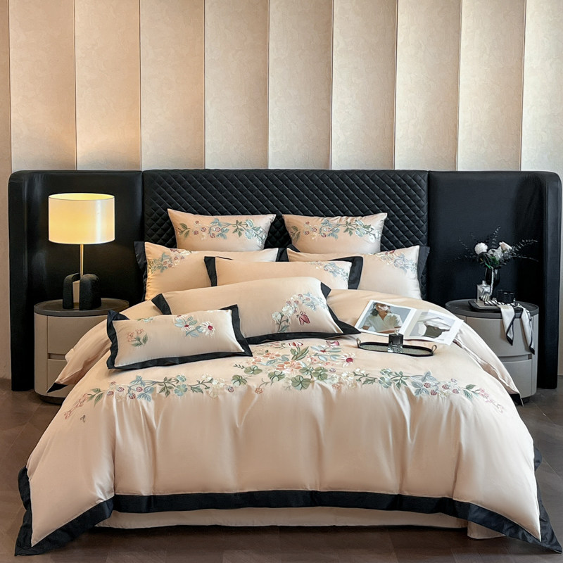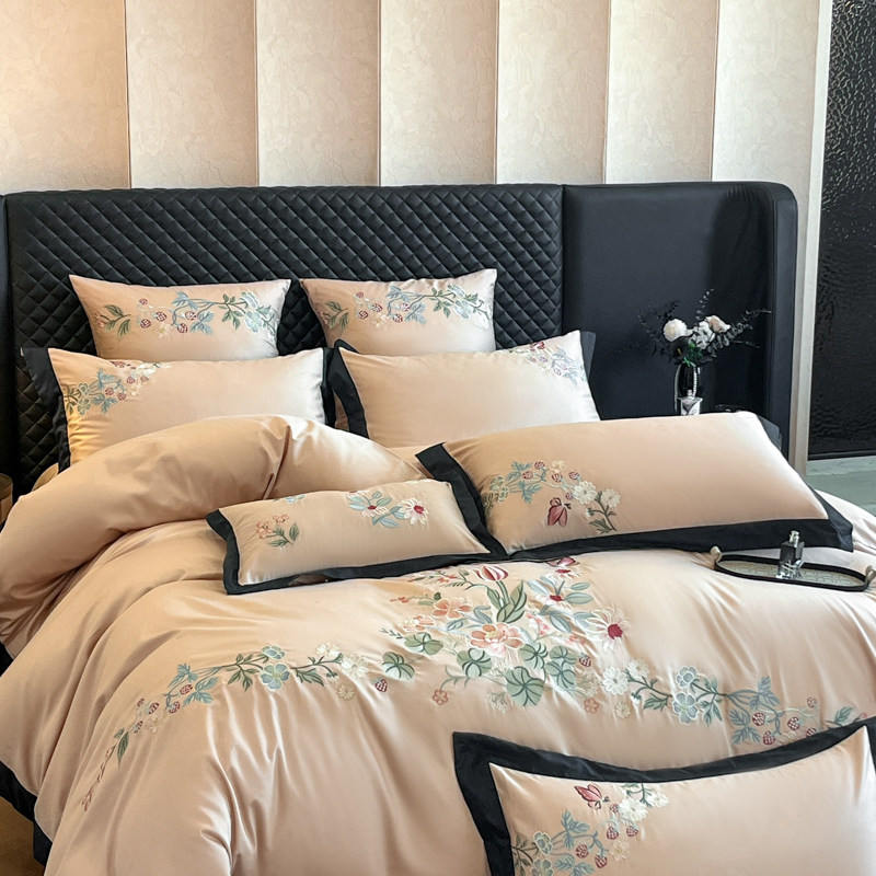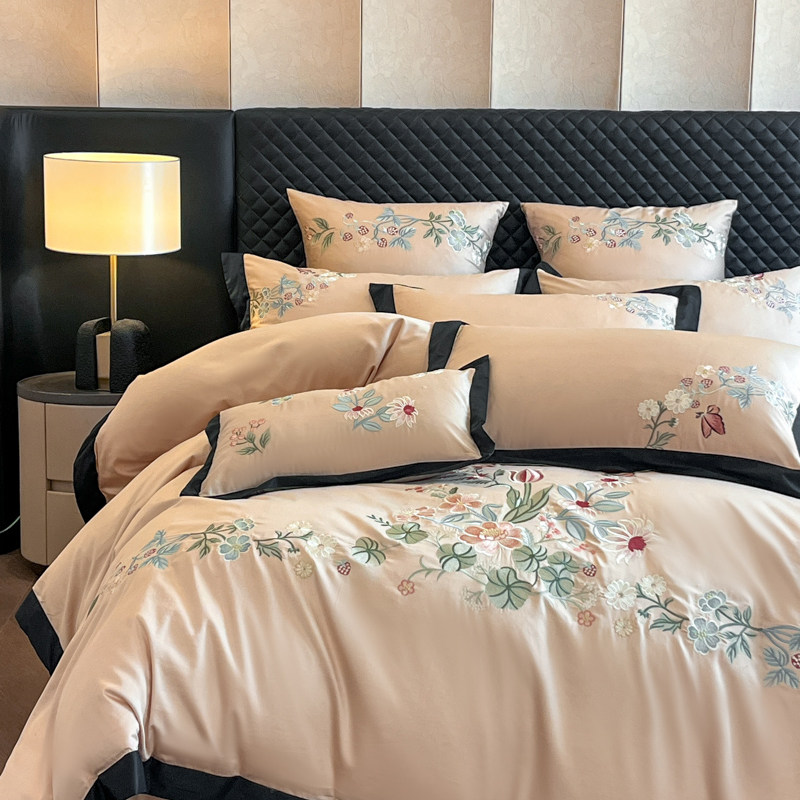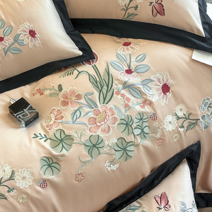 法式 160S长绒棉四件套花卉刺绣纯棉被套床单2025全棉床上用品床笠
