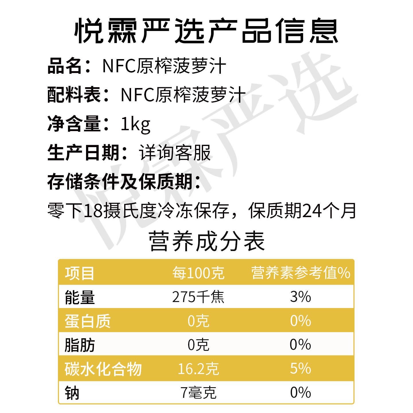 达川NFC菠萝汁原果鲜榨冷冻100%凤梨原汁原浆满杯金菠萝霸气凤梨