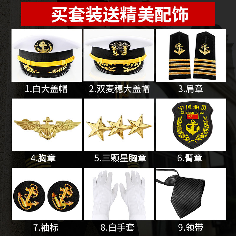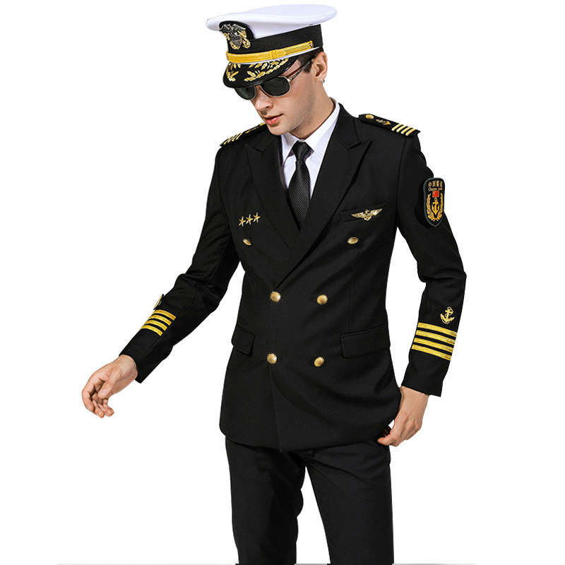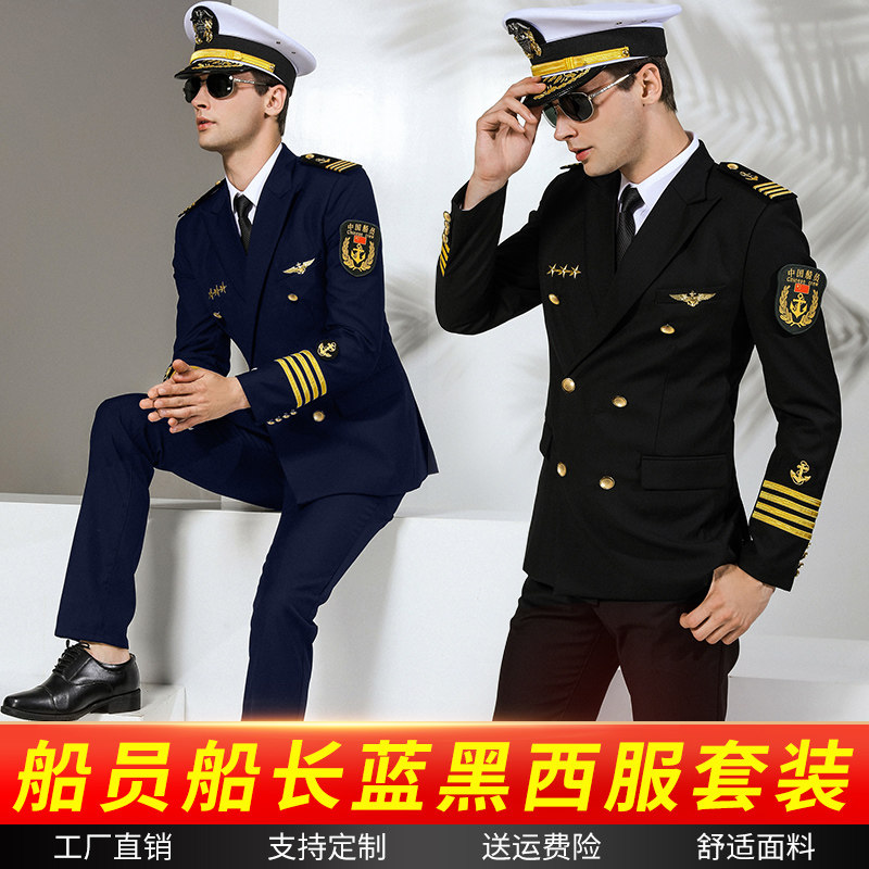 船长海员黑色西装 轮机长水手保安工作服 外套邮轮游艇船务制服套装