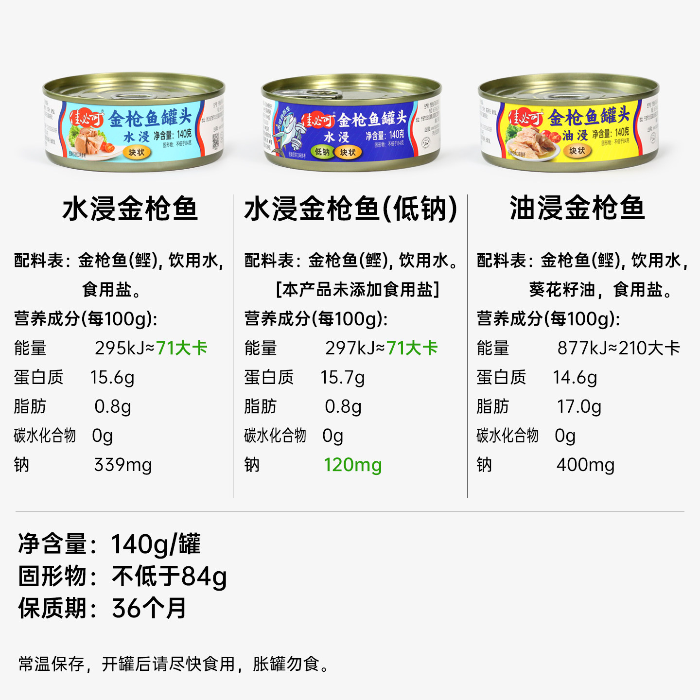 佳必可水浸金枪鱼罐头低脂健身即食吞拿鱼肉沙拉寿司140gx10罐