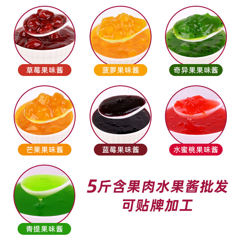 采集茶香5斤蓝莓果酱大桶装 水果颗粒酱冰沙刨冰奶昔甜品商用原料