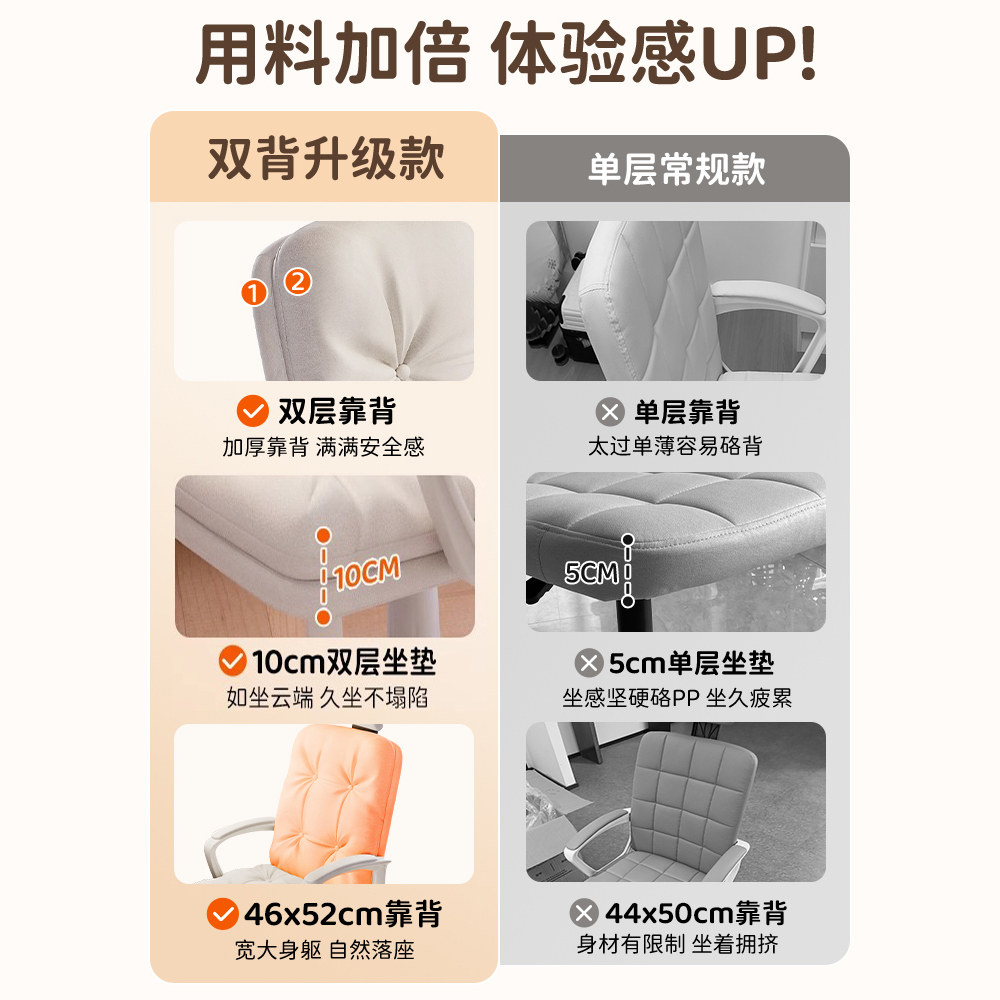椅子家用学习椅女生卧室电脑椅久坐舒适办公椅升降靠背沙发书桌椅