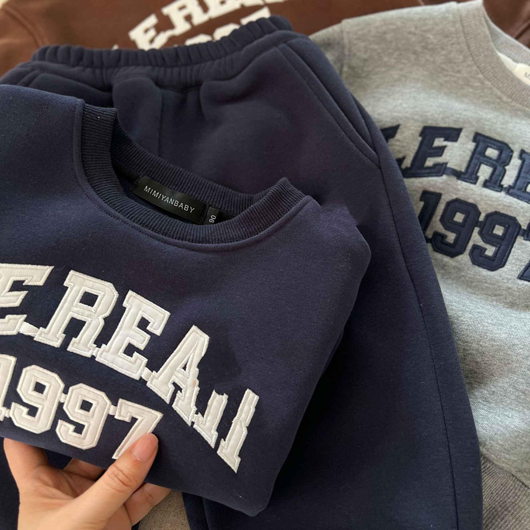 宝宝小熊卫裤 儿童卫衣套装 男童字母套头衫 款 两件套女加厚 加绒冬季