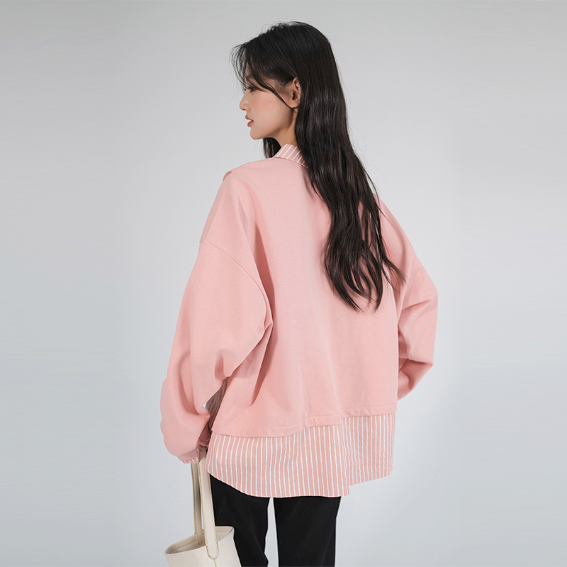清仓直降 时尚 大码 假两件条纹卫衣胖mm秋装 减龄别致上衣 女装