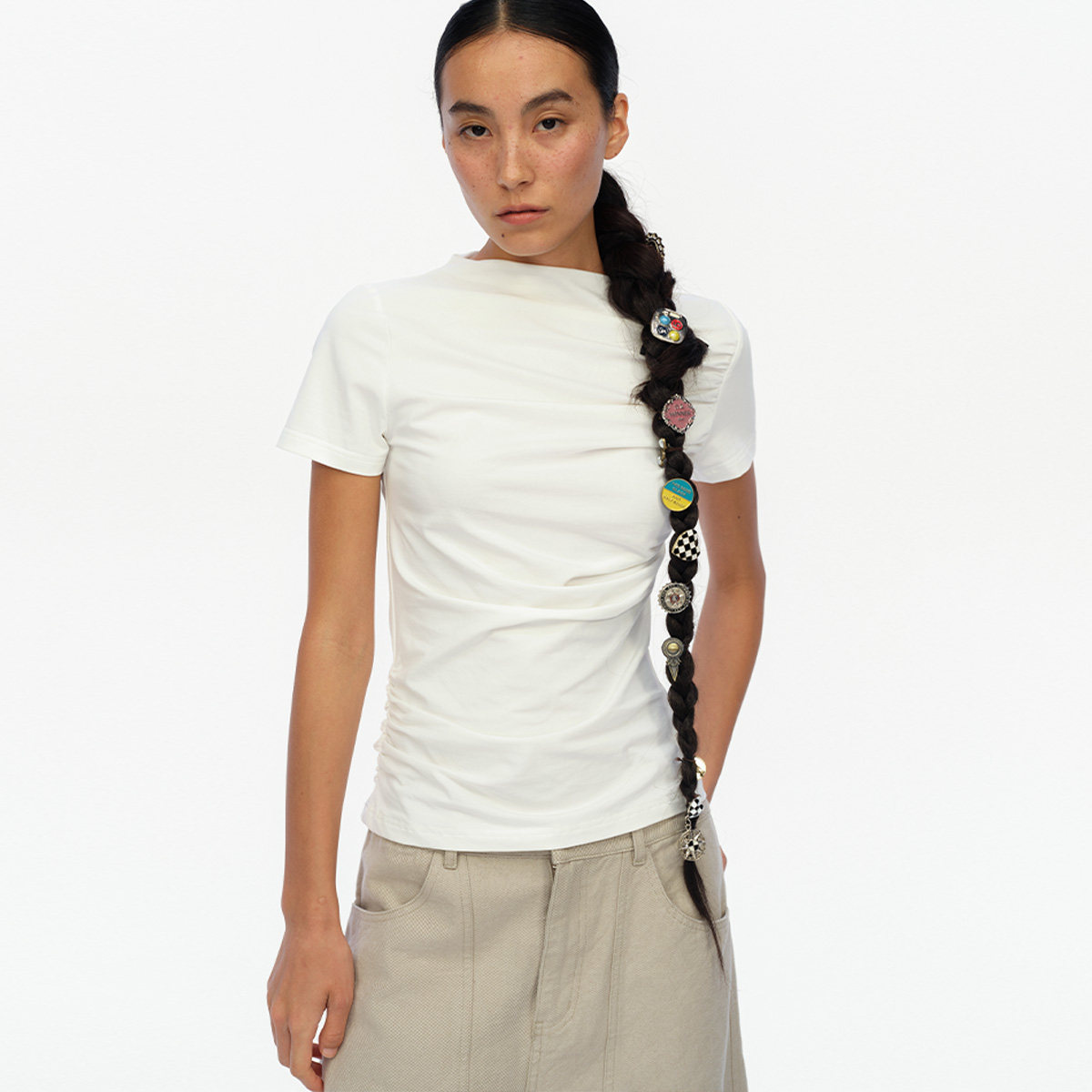T恤 正肩收腰短袖 oinimi 软雕塑褶皱tee