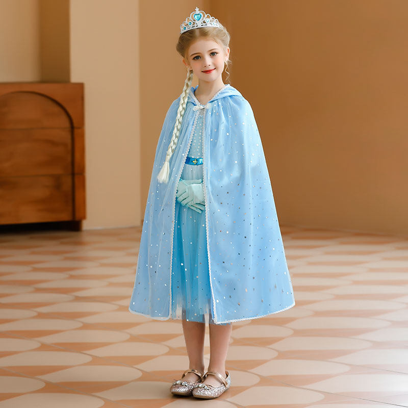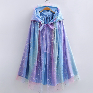 女儿童爱莎公主披风百搭冰雪奇缘春秋披肩新款 圣诞节表演中长斗篷