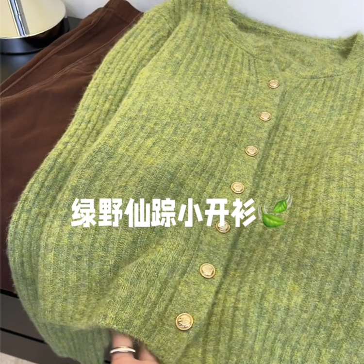 圆领单排扣慵懒法式 新款 上衣 外套2025春季 韩系绿色小清新针织开衫